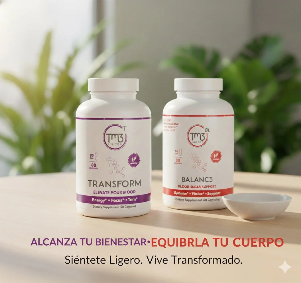 ¿Listo para tomar el control de tu energía, concentración y bienestar general? Transform de TM3 United es su respuesta a una vida impulsada por un propósito. Con una mezcla de ingredientes naturales como extracto de té verde, grano de café verde y cacao holandés, Transform te da el impulso que necesitas para sentirte con más energía, concentrado y en control de tu apetito. Di adiós a los días lentos y hola a una persona más saludable y feliz.
